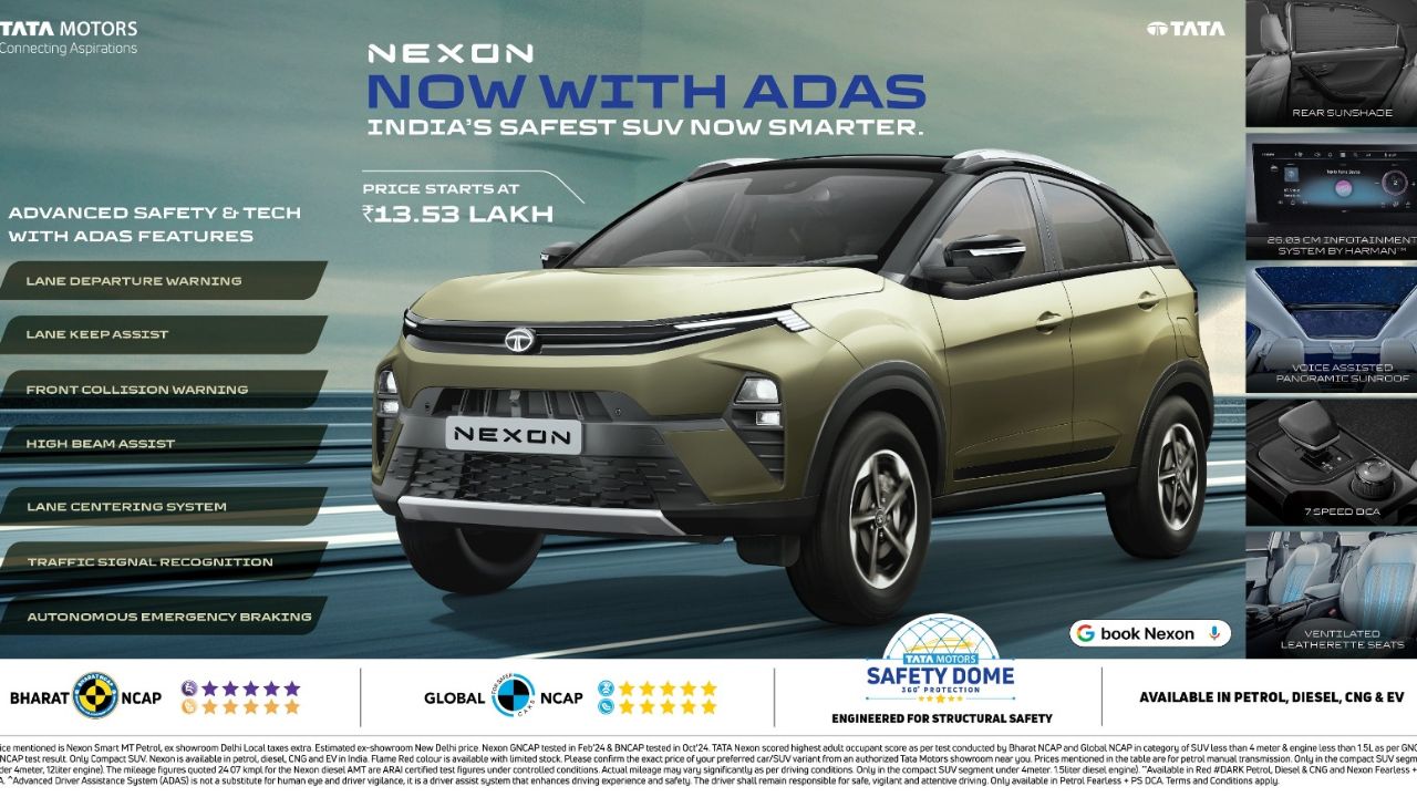 टाटा मोटर्सची लोकप्रिय बी-एसयूव्ही नेक्सॉन पुन्हा एकदा चर्चेत आली आहे. सप्टेंबर 2025 मध्ये ती भारतातील सर्वाधिक विक्री होणारी कार ठरली असून, याच महिन्यात कंपनीने तिच्या लाइनअपमध्ये ॲडव्हान्स्ड ड्रायव्हर असिस्टन्स सिस्टम्स (ADAS) टेक्नॉलॉजीचा समावेश जाहीर केला आहे.