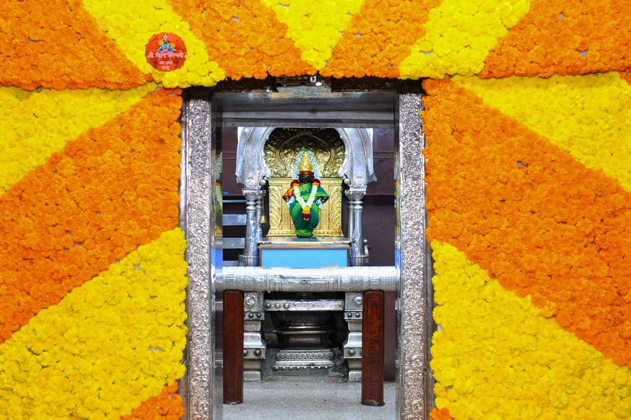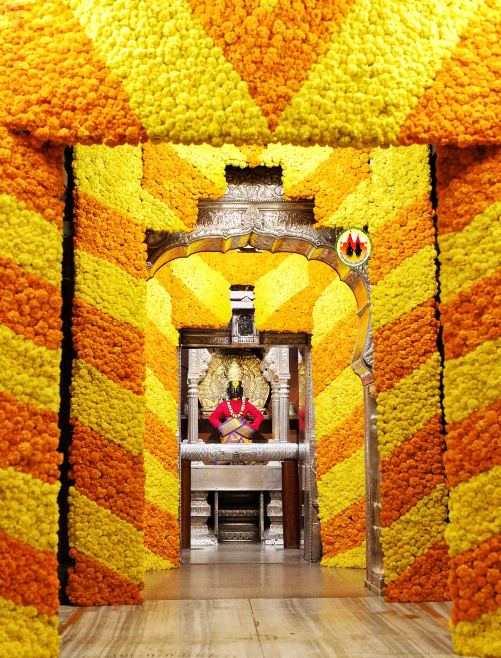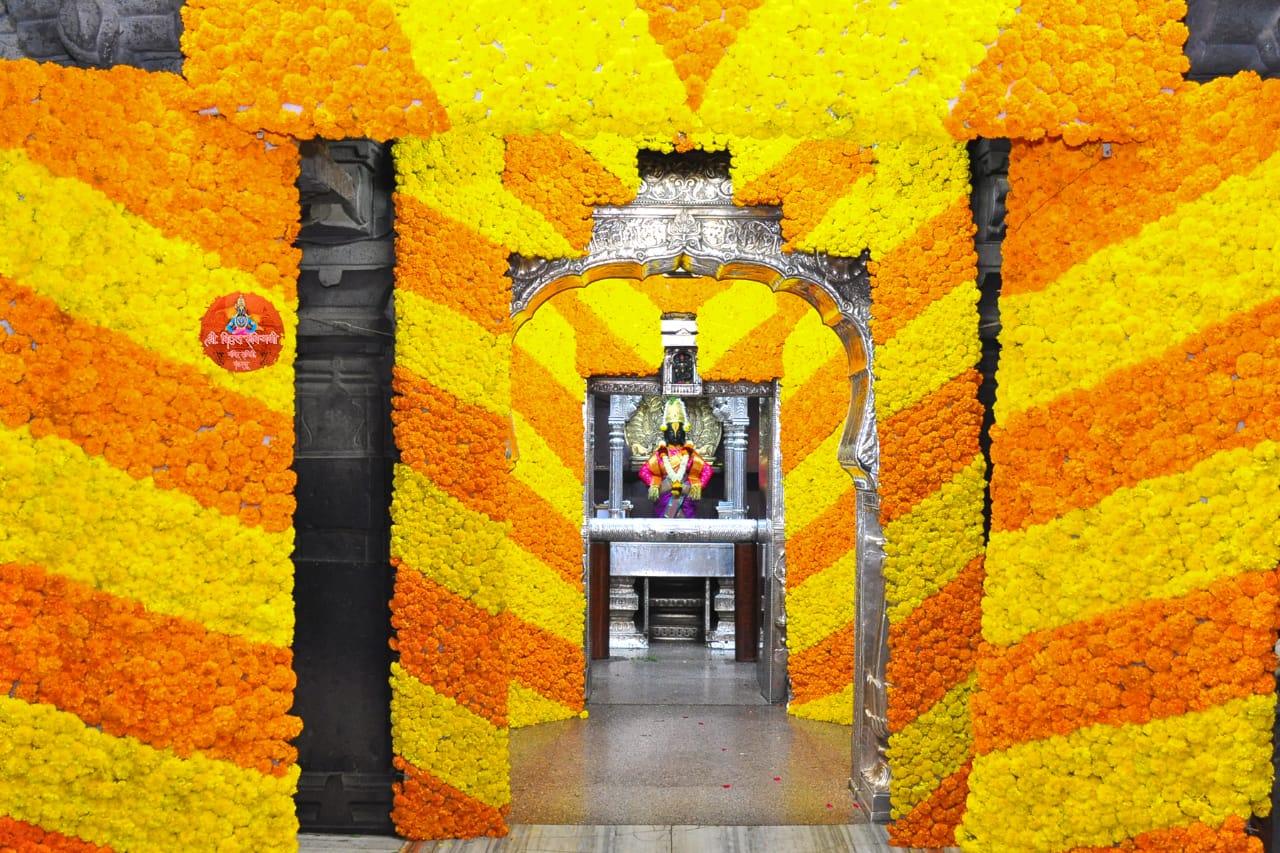 दिवाळीचं औचित्त्य साधुन विठ्ठल रुख्मिणी मंदिरात झेंडूच्या फुलांची आकर्षक सजावट करण्यात आली आहे.