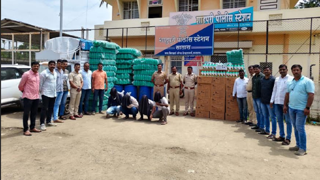 सातारा : बनावट तणनाशक तयार करणाऱ्या टोळीचा शाहूपुरी पोलिसांनी पर्दाफाश केला आहे. करंजे नाका येथे आठ जुलै रोजी दुपारी चार वाजता सापळा रचून सहा जणांना ताब्यात घेतले आहे. शाहूपुरी पोलिसांची ही अत्यंत महत्वाची कारवाई मानली जात आहे. २ लाख ६ हजाराच्या बायर कंपनीच्या बनावट औषधाच्या २६० बॉटल, १ लाख रुपये किमतीचा टाटा कंपनीचा टेम्पो, रेवडी, फलटण व वडूज येथील कारखान्यातून तब्बल १२ लाखाची बनावट राऊंडअप औषधे जप्त केली आहेत.