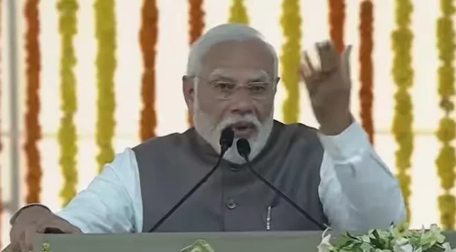 नरेंद्र मोदी म्हणाले, “आजकाल तुम्ही सर्वजण मोदींच्या हमी देण्याबाबत खूप चर्चा ऐकत असाल. नुकत्याच आलेल्या निवडणुकीच्या निकालानंतर ही चर्चा आणखी वाढली आहे, पण सुरतच्या जनतेला मोदींच्या हमी देण्याबाबत फार पूर्वीपासूनच माहिती आहे. इथल्या कष्टकरी जनतेने पाहिले आहे. मोदींची हमी वास्तवात बदलत आहे. सुरत डायमंड बाजार हे देखील या हमीचं उदाहरण आहे.”