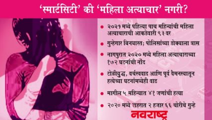 नागपूर पोलिसांच्या गुन्हे शाखेनं दिलेल्या माहितीनुसार, 2020 मध्ये नागपुरात महिला अत्याचाराच्या तब्बल 172 घटना घडल्या आहेत. तर 2021 च्या सुरुवातीच्या 5 महिन्यात हा आकडा 93 एवढा आहे. त्यामुळे नागपूरात महिला खरंच सुरक्षित आहेत का ? हा प्रश्न निर्माण झाला आहे.