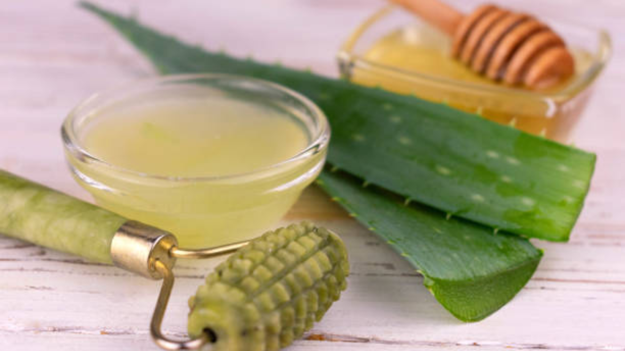 एलोवेरामध्ये अनेक गुणधर्म असतात जे त्वचेचे उपचार करण्यास फायदेशीर ठरत असतात. हे चेहऱ्यावरील खाज, जळजळ दूर करून त्वचेला थंडावा देण्यास मदत करत असतात. तर व्हाईटहेड्स आणि ब्लॅकहेड्स दूर करण्यासाठी एलोवेरा जेल लावून 15-20 मिनिटे चेहऱ्यावर लावून ठेवा आणि मग चेहरा पाण्याने स्वछ धुवा.