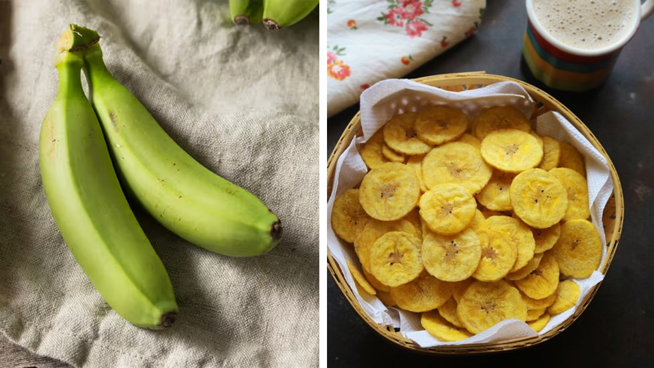 कच्च्या केळ्यामध्ये फायबर, जीवनसत्त्वे आणि खनिजे मुबलक प्रमाणात असतात. हे चिप्स पोटॅशियमचा चांगला स्रोत आहेत, ज्यामुळे रक्तदाब नियंत्रित ठेवण्यास मदत होते. याशिवाय यामध्ये असलेले अँटीऑक्सिडंट शरीराला अनेक प्रकारच्या आजारांपासून वाचवतात. तुम्ही यांना ओव्हनमध्ये बेक देखील करू शकता. तसेच ओव्हन नसल्यास यांना तुम्ही तळून देखील आपल्या स्नॅक्ससाठी तयार करून ठेवू शकता. संध्याकाळच्या स्नॅक्ससाठी हा एक उत्तम पर्याय आहे. जाणून घेऊयात यासाठी लागणारे साहित्य आणि कृती.