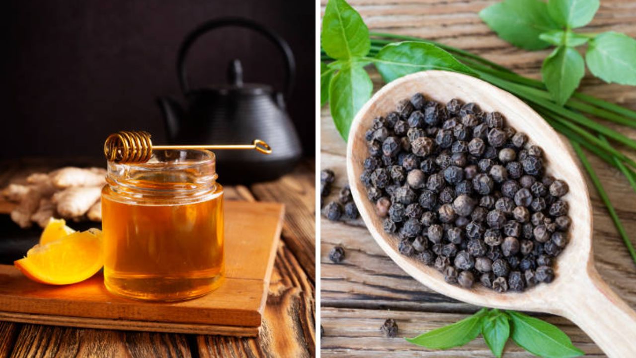 मध आणि मसाल्यातील काळीमिरी हा पदार्थ सर्वच घरांमध्ये उपलब्ध असतो. किंवा बाजारात सहज काळीमिरी पावडर उपलब्ध होते. वाटीमध्ये एक चमचा मध घेऊन त्यात चिमूटभर काळीमिरी पावडर मिक्स करून घ्या. तयार केलेले मिश्रण खा. यामुळे सर्दी खोकला आणि कोलेस्ट्रॉलची समस्यांपासून आराम मिळण्यास मदत होईल. वातावरणात बदल झाल्यानंतर आरोग्य बिघडून जाते. त्यामुळे बिघडलेले आरोग्य सुधारण्यासाठी मध आणि काळीमिरीचे सेवन करावे.