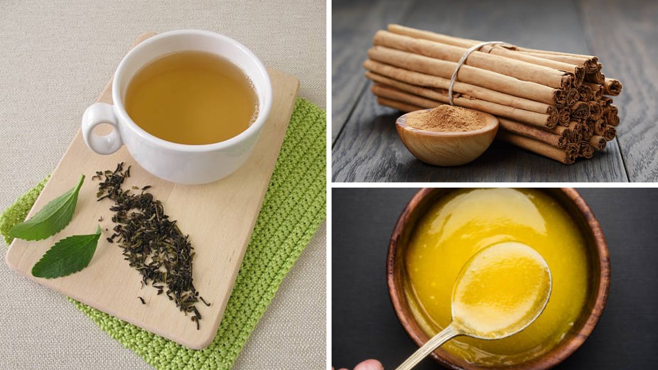 झोपेतून उठल्यानंतर अनेकांना सगळ्यात आधी ग्रीन टी पिण्याची सवय असते. ग्रीन टी प्यायल्याशिवाय दिवसाची सुरुवातच होत नाही. आरोग्यासाठी ग्रीन टी फायदेशीर असल्यामुळे अनेक लोक ग्रीन टी चे सेवन करतात. ग्रीन टी मध्ये अँटीऑक्सिडंट आणि अँटी-इंफ्लेमेटरी गुणधर्म आढळून येतात. तसेच सकाळी उठल्यानंतर दुधाचा चहा किंवा कॉफी पिण्याऐवजी तुम्ही ग्रीन टी चे सेवन करू शकता. ग्रीन टी प्यायल्यामुळे आरोग्य सुधारते. ग्रीन टी मध्ये आढळून येणारे कॅटेचिन नावाचे अँटीऑक्सिडंट कर्करोगाच्या पेशींपासून शरीराचे होणारे नुकसान टाळतात. तसेच ग्रीन टी मध्ये तुम्ही दालचिनी पावडर आणि तूप मिक्स करूनसुद्धा पिऊ शकता. आज आम्ही तुम्हाला ग्रीन टी मध्ये तूप आणि दालचिनी मिक्स करून प्यायल्यामुळे आरोग्याला नेमके काय फायदे होतात, याबद्दल सविस्तर माहिती सांगणार आहोत.(फोटो सौजन्य-istock)