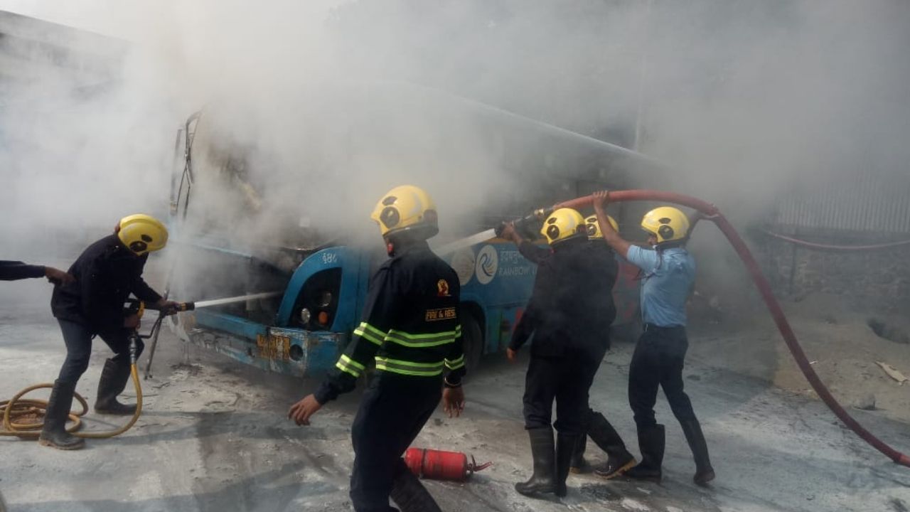 घटनास्थळी पोहोचताच जवानांनी पाहिले की, बसच्या पुढच्या बाजूने अधिक प्रमाणात पेट घेतला होता. जवानांनी लगेच चारही बाजूने पाण्याचा मारा करीत सुमारे दहा मिनिटात आग पुर्ण विझवत पुढील धोका दूर केला. सदर आगीमध्ये बसचे बरेच नुकसान झाले असून आगीचे कारण समजू शकले नाही. सुदैवाने या घटनेत कोणी जखमी किंवा जीवितहानी झालेली नाही.