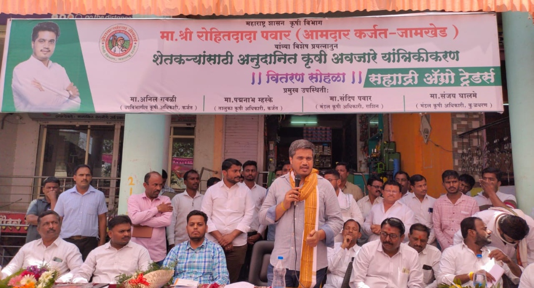 कर्जत : आमदार रोहित पवार यांनी शासन स्तरावर केलेल्या विशेष प्रयत्नातून शेतकऱ्यांसाठी अनुदानित यांत्रिकीकरणासाठी कोट्यवधींची मदत शासनाकडून मिळाली आहे. त्या यांत्रिकीकरणाचा वितरण सोहळा आमदार रोहित पवार यांच्या हस्ते कर्जत तालुक्यातील राशीन येथे पार पडला.