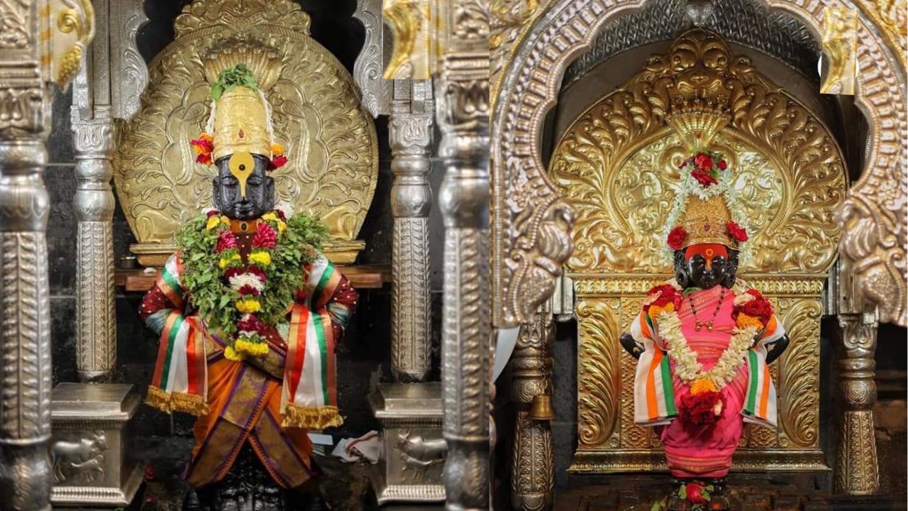 विठ्ठल रुक्मिणी मंदिरांच्या भवय गाभाऱ्यामध्ये ही फुलांची सजावट करण्यात आली आहे. तसेच खांबांना देखील फुलांची सजावट करण्यात आली आहे. मध्यभागी अशोकचक्र देखील लावण्यात आले आहे. ही सजावट पुणे येथील विठ्ठल भक्त सचिन चव्हाण यांनी केली आहे तिरंग्याची सजावट केल्याने विठ्ठल मंदिरात विठ्ठल भक्ती बरोबर देशभक्तीचा माहोल तयार झाला आहे. देवाचे प्रवेशद्वार चोळखांबी सुळकांबीसह मंदिरात फुलांची सजावट केली आहे. त्याचबरोबर विठ्ठल व रखुमाई यांच्या पोषाखामध्ये देखील तिरंग्याची झलक दिसून येत आहे. यामुळे देवाचे मनमोहक रूप हे अधिकच खुलून दिसत आहे.