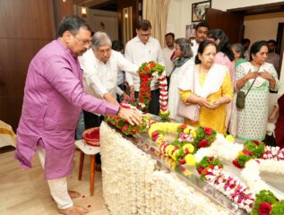 पुण्याचे माजी खासदार आणि कॅंाग्रेसचे ज्येष्ठ नेते सुरेश कलमाडी यांचे आज दुःखद निधन झाले. ना. पाटील यांनी आज सुरेश कलमाडी यांच्या कोथरुड येथील निवासस्थानी अंत्यदर्शन घेऊन श्रद्धांजली वाहिली. पुण्याच्या सामाजिक आणि सार्वजनिक जडणघडणीत सुरेश कलमाडी यांचे योगदान महत्त्वाचे होते. ‘पुणे फेस्टिव्हल’च्या माध्यमातून पुण्याच्या सांस्कृतिक वैभवात त्यांनी भर घातली. तसेच, बालेवाडी क्रीडा संकुलाच्या माध्यमातून क्रीडा क्षेत्रासाठी भरीव योगदान दिले. त्यांच्या निधनाने सामाजिक आणि सांस्कृतिक जडणघडणीतील दूरदर्शी व्यक्तिमत्व हरपले, अशा शब्दांत ना. चंद्रकांतदादा पाटील यांनी श्रद्धांजली वाहिली. दरम्यान, भारतीय जनता पक्ष पुणे शहराच्या वतीने शहर कार्यालयात सुरेश कलमाडी यांना श्रद्धांजली वाहण्यात आली. यावेळी केंद्रीय राज्यमंत्री मुरलीधर मोहोळ, राज्याचे उच्च व तंत्र शिक्षण मंत्री चंद्रकांतदादा पाटील, प्रदेश सरचिटणीस राजेश पांडे यांच्यासह भाजपचे सर्व पदाधिकारी उपस्थित होते.