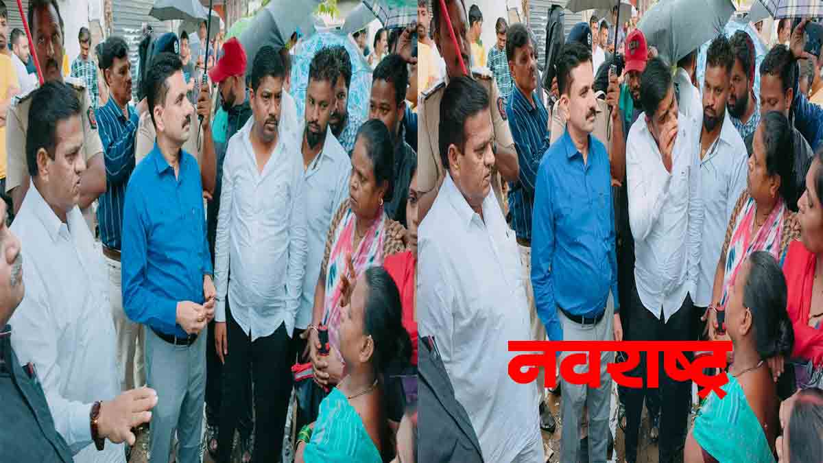 टिटवाळा : टिटवाळ्यात (Titwala) आमदार विश्वनाथ भोईर (MLA Vishwanath Bhoir) आणि महापालिका आयुक्त भाऊसाहेब दांगडे (KDMC Commissioner Bhausaheb Dangde) यांनी भर पावसात पाहणी दौरा केला. या दरम्यान टिटवाळयातील इंदिरानगर परिसरात (Indira Nagar Titwala) रस्ते नाहीत. लोकांच्या घरात पाणी शिरलेले, कचऱ्याचे साम्राज्य पसरले आहे. हे पाहून आमदारही देखील आवाक् झाले. महिला नागरिक यांनी आमदार आयुक्तांच्या समोरच समस्याचा पाढा वाचला. आत्ता आयुक्तांनी कालबद्ध कार्यक्रम घेऊन समस्या सोडविण्याचे आश्वासन दिले आहे.