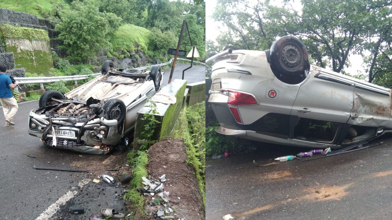 आज सकाळी त्यांचे वाहन नेरळ माथेरान घाटरस्ता पार करीत असताना पिटकर पॉइंट येथे त्यांच्या गाडीचा चालक याला तेथे अवघड वळण पार करता आले नाही आणि ती गाडी तेथे पलटली.त्याची माहिती मिळताच नेरळ पोलिस ठाण्याचे प्रभारी अधिकारी शिवाजी ढवळे,पोलिस उप निरीक्षक श्रीरंग किसवे यांनी घटनास्थळी धाव घेऊन जखमी रुग्णांसाठी रुग्णवाहिका बोलावून घेत जखमींना रुग्णालयात पाठवून दिले.या अपघातात गाडी मधून प्रवास करणाऱ्या पाच पैकी एक महिला प्रवासी गंभीर असून अन्य चार प्रवासी यांना फ्रॅक्चर झाले आहे.