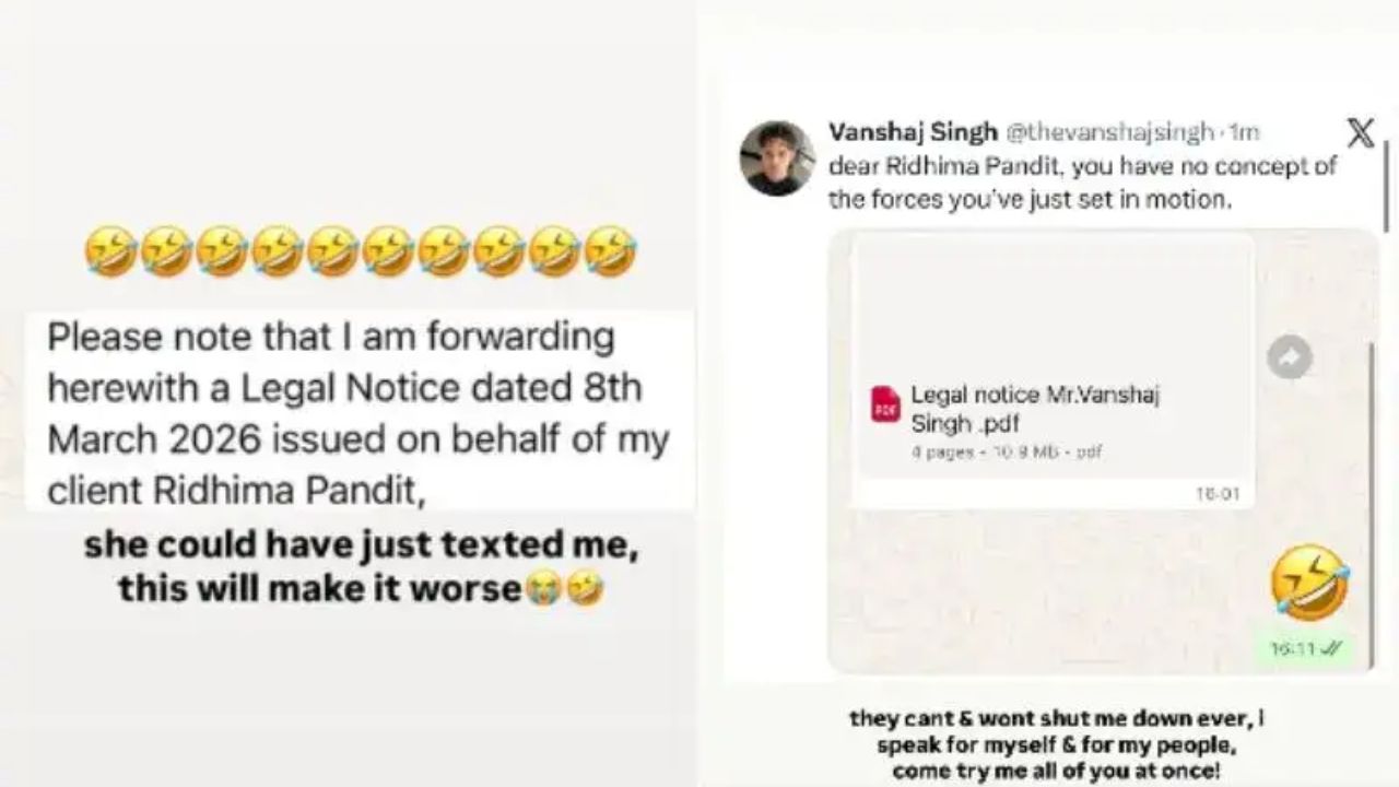 रिद्धिमा पंडितने त्याला कायदेशीर नोटीस पाठवल्यानंतर, वंशराज सिंहने इन्स्टाग्रामवर एक स्टोरी शेअर केली. चॅटची एक झलक शेअर करताना त्याने लिहिले, “ते मला कधीही गप्प करू शकत नाहीत आणि ते कधीही करू शकणार नाहीत. मी स्वतःसाठी आणि माझ्या लोकांसाठी बोलेन. चला आपण सर्वजण मिळून हे करून पाहूया.” असे लिहून त्याने ही पोस्ट सोशल मीडियावर शेअर केली आहे.