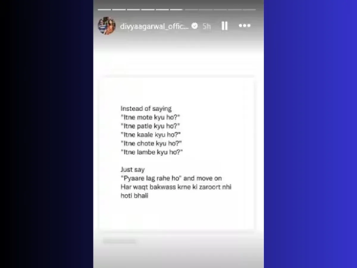 मात्र, आता दिव्याने क्रिप्टिक नोटने सर्वांची बोलती बंद केली आहे. पोस्ट शेअर करताना दिव्याने लिहिले – ‘तू इतकी जाड का आहेस, तू इतकी पातळ का आहेस, तू इतकी काळी का आहेस, तू इतकी लहान का आहेस, तू इतकी उंच का आहेस?’ फक्त ‘तुम्ही सुंदर दिसत आहात’ असे म्हणा, प्रत्येक वेळी फालतू बोलण्याची गरज नाही भाऊ.