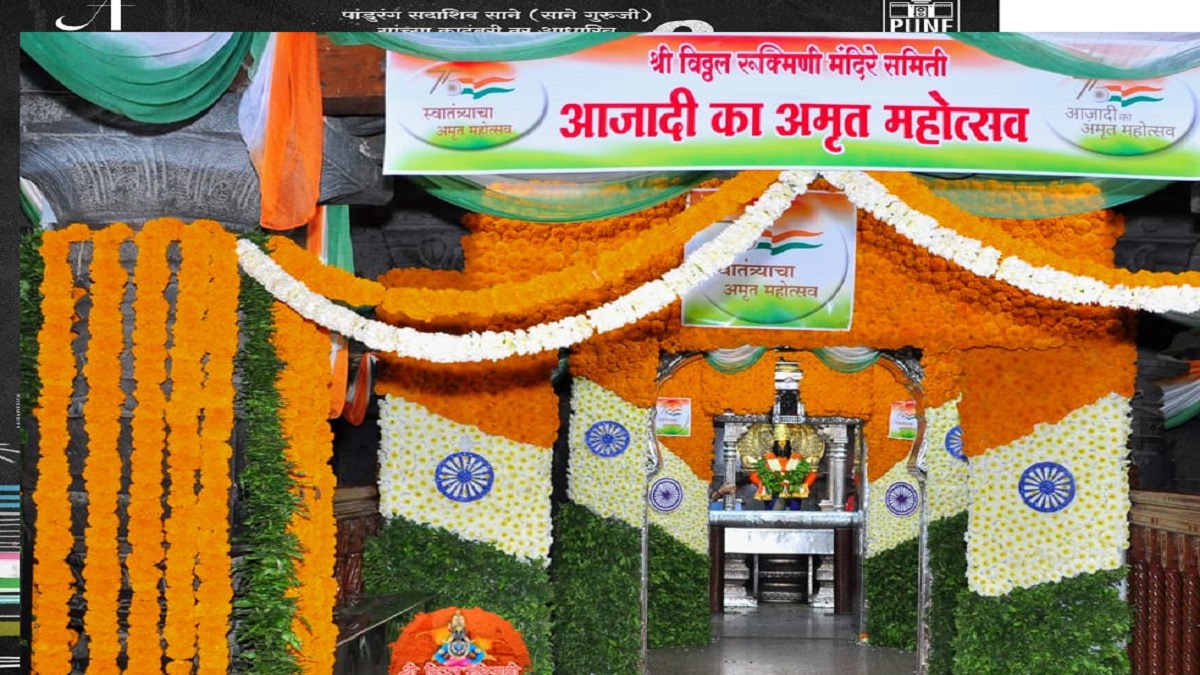 आज स्वातंत्र्याच्या अमृत महोत्सवानिमित्त पंढरपुरमध्ये श्री विठ्ठल मंदिरात आकर्षक सजावट करण्यात आली.