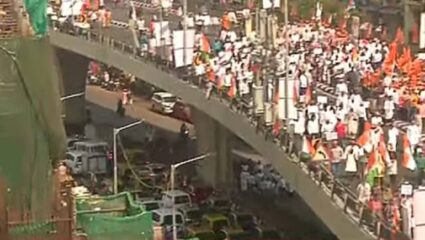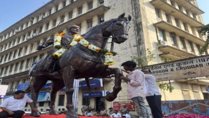 [caption id="attachment_354278" align="alignnone" width="1200"] छत्रपती शिवाजी महाराजांचा अश्वारूढ पुतळाही आंदोलनस्थळी[/caption] [caption id="" align="alignnone" width="1200"] महात्मा ज्योतिबा फुले आणि सावित्रीबाई फुले यांच्या प्रतिमेला आंदोलनकर्त्यांकडून केलं वंदन[/caption] [caption id="attachment_354281" align="alignnone" width="1200"] बाबासाहेब आंबेडकरांचा पुतळाही आंदोलनस्थळी[/caption]