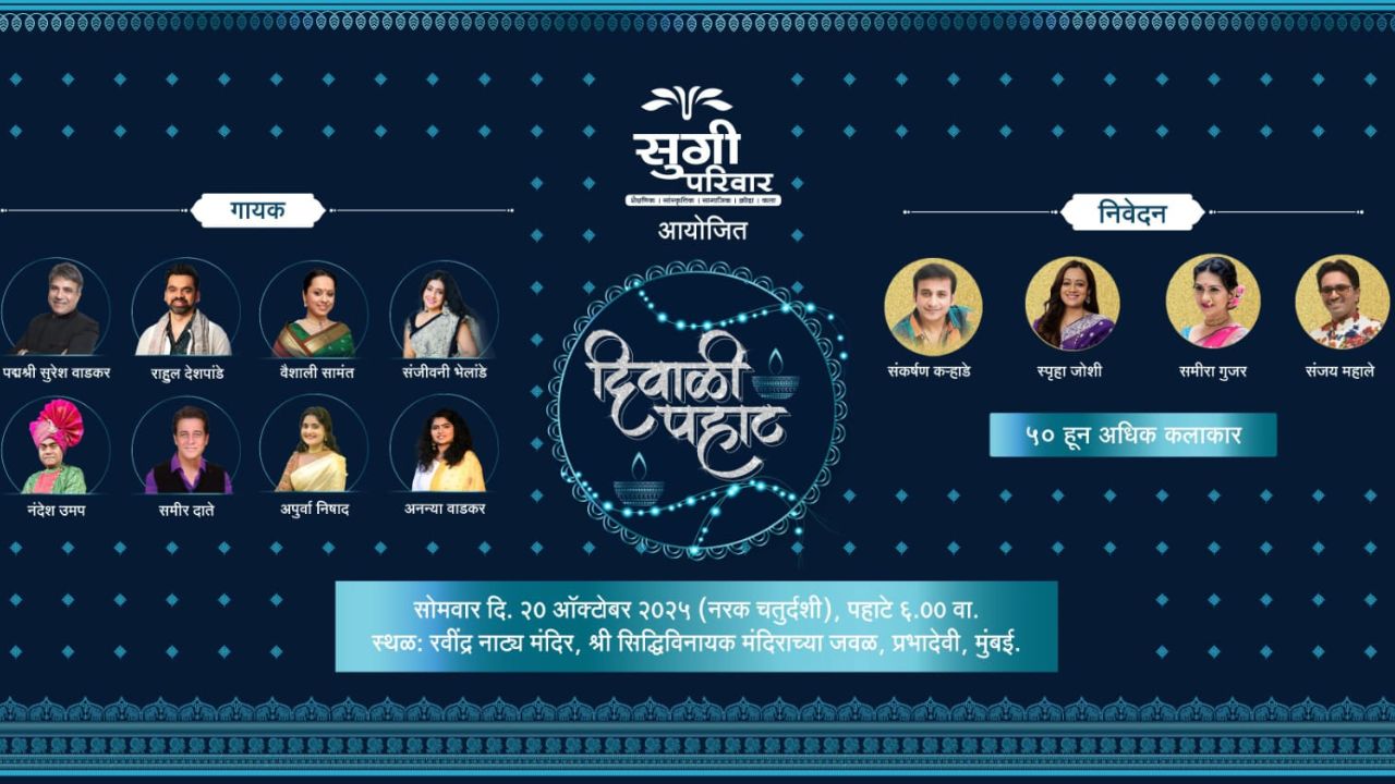 सोमवार, २० ऑक्टोबर २०२५ रोजी सकाळी ६.०० वाजता, रवींद्र नाट्य मंदिर, प्रभादेवी या प्रतिष्ठित ठिकाणी होणारा हा सोहळा नरक चतुर्दशीच्या दिवशी दिवाळीच्या पहिल्या दिवसाची सुंदर सुरुवात करणार आहे.या वर्षीची ‘दिवाळी पहाट’ ही सर्वात मोठी, भव्य आणि प्रतिष्ठित ठरणार आहे. या कार्यक्रमात देशभरातील प्रसिद्ध व राष्ट्रीय स्तरावर ख्यातनाम गायक कलावंत आपली सादरीकरणे सादर करणार असून, पारंपरिक, शास्त्रीय आणि लोकसंगीत यांचा सुंदर मिलाप या सोहळ्यात अनुभवायला मिळणार आहे.