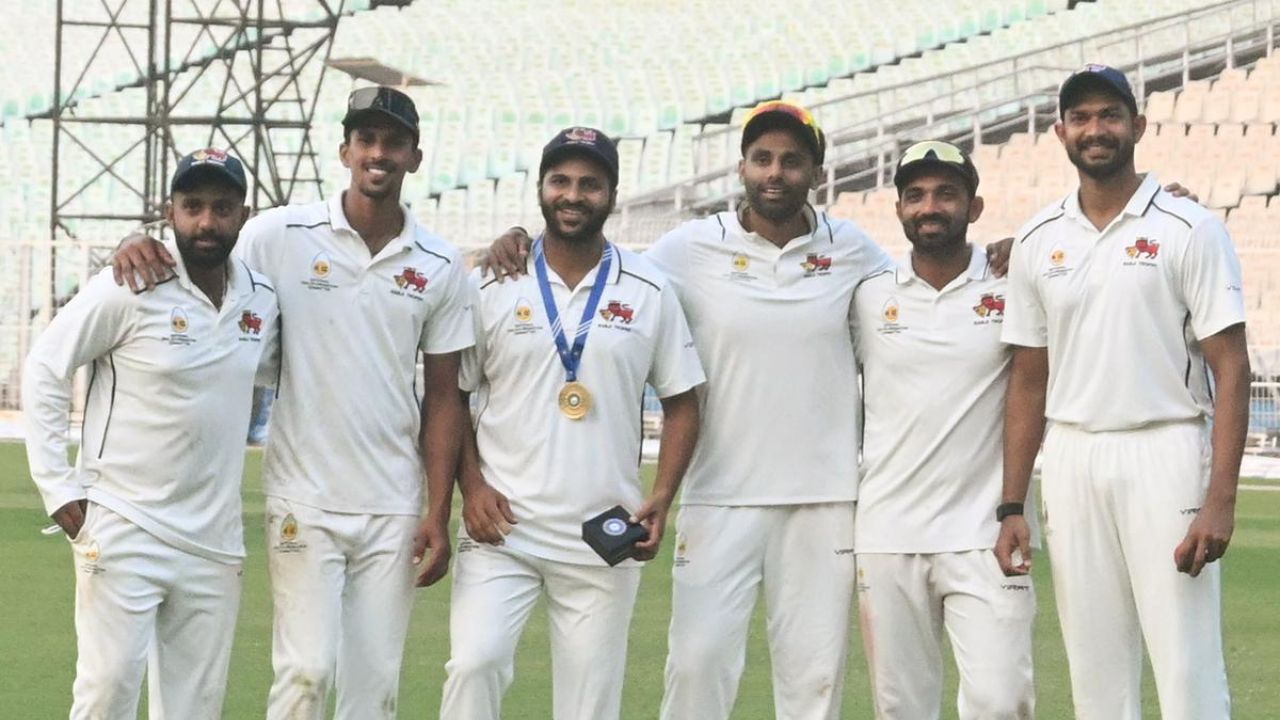 शार्दुल ठाकूर (कर्णधार), आयुष म्हात्रे, अजिंक्य रहाणे, आकाश आनंद (यष्टीरक्षक), सिद्धेश लाड, शिवम दुबे, तुषार देशपांडे, सर्फराज खान, शम्स मुलाणी, तनुष कोटियन, सिल्वेस्टर डिसोझा, रॉयस्टन डॉ, हार्दिक मुरब्बी खान, इंद्रकुमार उमेद, इंद्रकुमार (युवती) अखिल हेरवाडकर