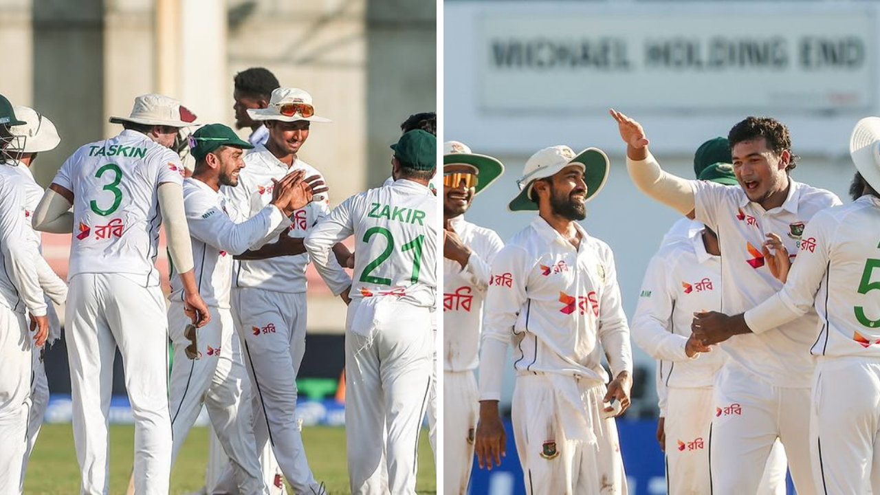 कवीम हॉज (55) आणि कर्णधार क्रेग ब्रॅथवेट (43) यांनी यजमानांसाठी काहीशी झुंज दाखवली, परंतु तैजुलने निर्णायक क्षणी विकेट घेत बांगलादेशने चौथ्या दिवशी संस्मरणीय विजय नोंदवला. बांगलादेशने ऐतिहासिक विजय मिळवत वेस्ट इंडिजला धूळ चारली असल्याचे दिसून आले आहे (फोटो सौजन्य – Instagram)