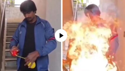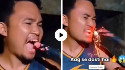 OMG Stunt Video : हे प्राणी नक्की कोणत्या ग्रहावरचे? दोघांनी हातात तर एकाने डोक्यावर फोडला जळता फटाका. पाहून सर्वांनाच बसला शॉक. यात पुढे काय घडलं ते आता तुम्हीच पहा.