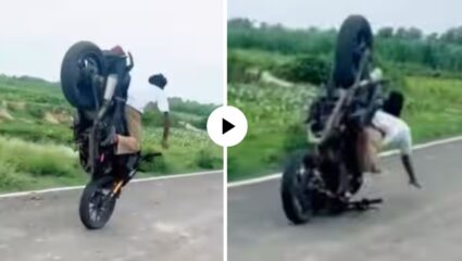 लोकांना सोशल मीडियावर प्रसिद्ध मिळवण्यासाठी रिल बनवण्याचे प्रचंड वेड लागले आहे. यासाठी लोक धोकादायक स्टंट करत आहेत, लोकांना आपल्या जीवाची कसलीही पर्वा राहिलेली नाही. सध्या असाच एक व्हिडिओ व्हायरल होत…