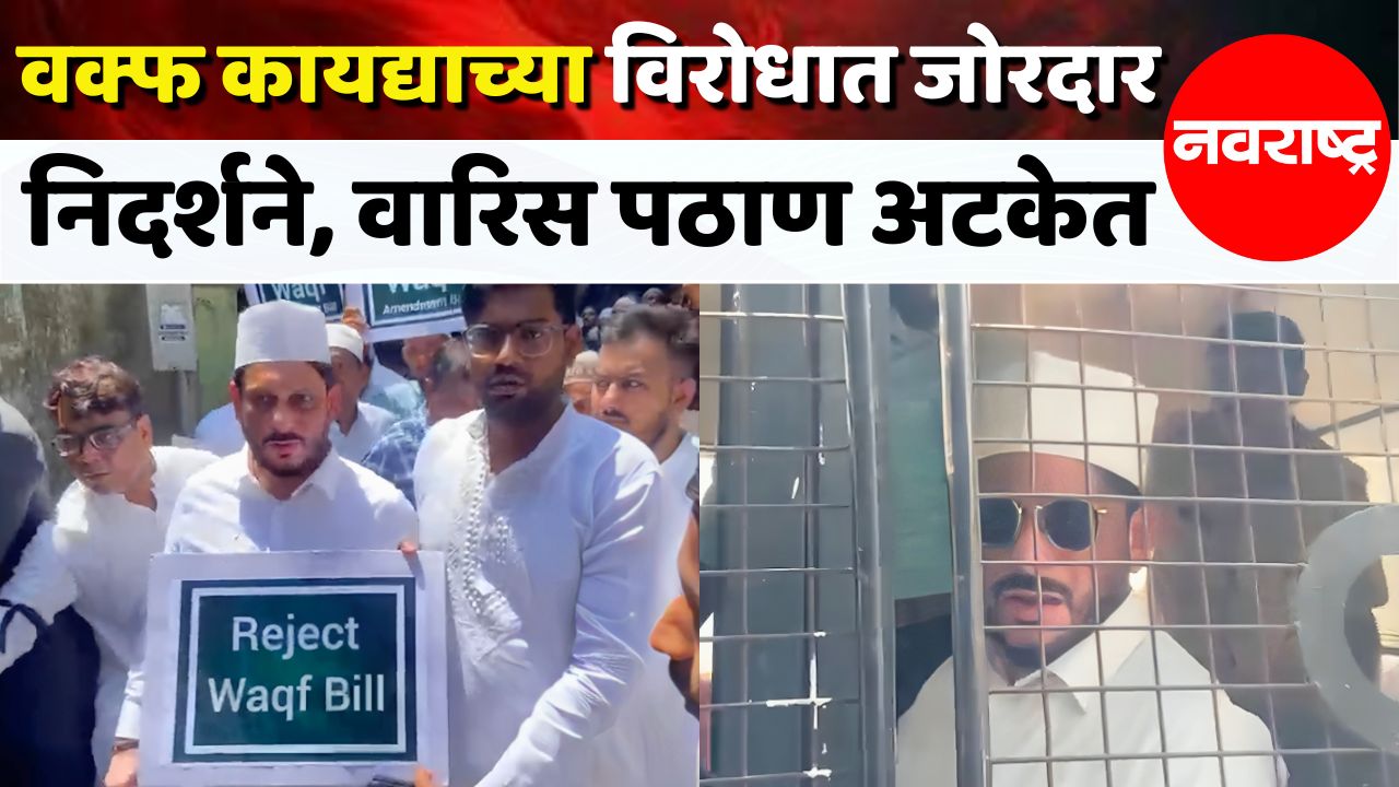 मुंबईत वक्फ कायद्याविरोधात एआयएमआयएमचे राष्ट्रीय प्रवक्ते वारिस पठाण आणि इतर कार्यकर्त्यांनी जोरदार आंदोलन केलं. यावेळी आंदोलकांनी काळ्या पट्ट्या बांधून घोषणाबाजी केली आणि वक्फ कायद्याच्या विरोधात फलक हातात घेत निदर्शने केली. पोलिसांनी परिस्थिती नियंत्रणात ठेवण्यासाठी मोठा बंदोबस्त तैनात केला होता. याचदरम्यान पोलिसांनी वारिस पठाण यांना ताब्यात घेतलं.