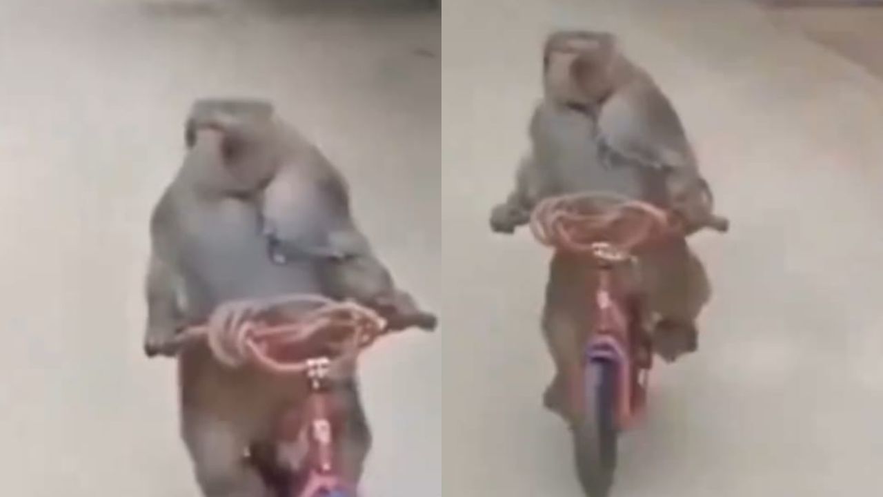 व्हायरल व्हिडिओमध्ये तुम्ही पाहू शकता की, एक माकड सायकल चालवताना दिसत आहे. माकड जोरात सायकल चालवत असून असे वाटत आहे की, त्याच्या सोबत कोणीतरी सायकल रेस लावली आहे किंवा त्याच्या मागे कोणी तरी लागले आहे. सायकल चालवताना माकड मागे वळून पाहात आहे. तसेच तो मध्येच सायकलवरून उतरून सायकल पायी घेऊन जाताना देखील दिसत आहे. हा व्हिडिओ सोशल मीडियावर मोठ्या प्रमाणात व्हायरल होत असून अनेकजण आवाक् झाले आहेत.