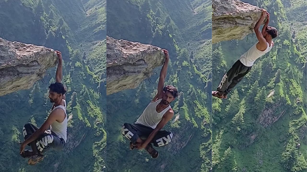 व्हायरल व्हिडिओमध्ये तुम्ही पाहू शकता की, एक तरूण एका डोंगराच्या काठावर लटकलेला आहे. तो त्या टेकडीला लटकून योगा करताना दिसत आहे. खाली खोल दरी दिसत आहे. तरूण ज्याप्रमाणे लटकलेला दिसत आहे असे वाटते की त्याचा हात घसरला तर तो क्षणात खाली पडेल आणि त्याचा जीव जाईल. हा व्हिडिओ पाहून अनेकजणांचा थरकाप उडाला आहे. हा व्हिडिओ अद्याप कुठला आहे हे कळालेले नाही.