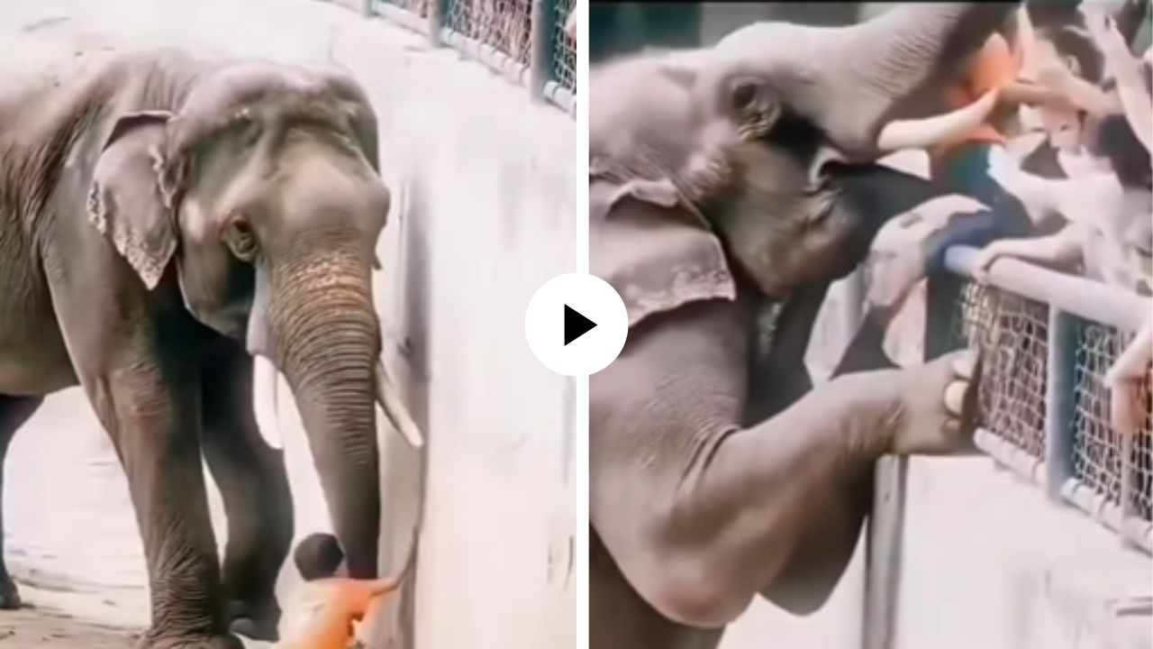 व्हायरल व्हिडिओमध्ये तुम्ही पाहू शकता की यात एक लहान मुलगा प्राणीसंग्रहालयातील हत्तींच्या पिंजऱ्यात चुकून पडला आहे. त्याला असे पडलेले पाहताच वर उभे असलेले सर्व लोक घाबरतात आणि त्याला वाचवण्यासाठी धडपड करू लागतात पण तितक्यातच एक हत्ती हुशारीने तिकडे येतो आणि खाली पडलेल्या मुलाला आपल्या सोंडेने वर उचलत त्याला त्याच्या पालकांच्या स्वाधीन करतो. हत्ती सारख्या प्राण्यामध्येही माणुसकी शिल्लक आहे आणि त्याने उचललेले हे मदतीचे पाऊल खरोखर प्रशंसेस पात्र आहे. लोकांना हे दृश्य इतके आवडले की त्यांनी लगेच आपल्या फोनच्या कॅमेरात त्याला कैद करून हे दृश्य सोशल मीडियावर शेअर केले. व्हिडिओ पाहताच युजर्स हत्तीच्या उदारतेवर चांगलेच खुश झाले असून वेगाने हा व्हिडिओ आता शेअर केला जात आहे.