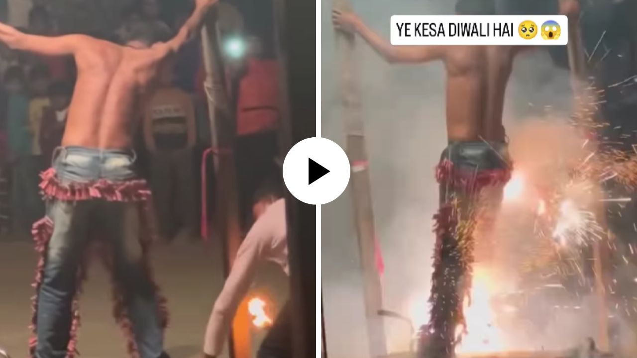 दिवाळीच्या सणात अनेकजण फटाके फोडून सण साजरा करतात. पण हे फटाके फोडताना सावधानगिरी बाळगणे गरजेचे आहे अथवा आपल्याला इजा होण्याची शक्यता असते. फटाक्यांमध्ये फोडली जाणारी माळ फारच लोकप्रिय पण तिला फोडताना एक विशेष अंतर राखून मग माळ फोडली जाते. पण नुकताच व्हायरल होत असलेल्या व्हिडिओमध्ये एक वेगळेच दृश्य दिसून आले. काही लोक स्वतःचं पोट भरण्यासाठी जीव धोक्यात घालतात, आणि त्यांच्या धाडसाला खरंच सलाम करावासा वाटतो. असाच एक थरारक व्हिडिओ सध्या सोशल मीडियावर व्हायरल होतो आहे, ज्यात एका तरुणाने पैशांसाठी अक्षरशः मृत्यूला थोपवून धरले आहे.