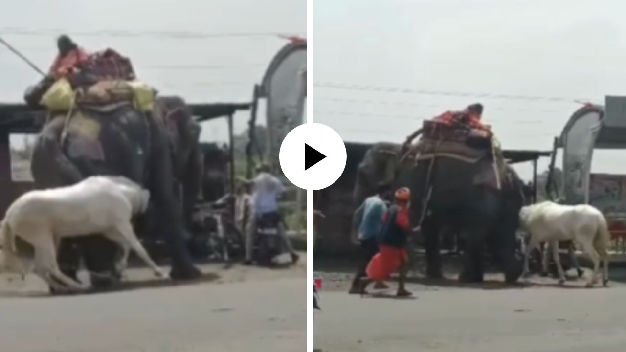 व्हायरल व्हि़डिओमध्ये तुम्हा पाहू शकता यात एक पिसाळलेला घोडा अचानक पळत येऊन रस्त्यावर उभ्या असलेल्या हत्तीवर जोरदार हल्ला करत असल्याचे दिसते. घोड्याचा हा हल्ला पाहताच गजराज जरा अस्वस्थ होतो आणि इकडे तिकडे पळू लागतो. व्हिडिओमध्ये स्पष्ट दिसत आहे की, एक हत्ती रस्त्याच्या कोपऱ्याला उभा असतो यावेळी त्याचा मालकही त्याचा सोबत असतो मात्र तितक्यात मागून एक घोडा त्याच्यावर हल्ला करतो ज्यानंतर हत्ती त्याच्यापासून आपली सुटका करण्यासाठी तिथून पळून जातो. यावेळी हत्तीचा मालक घोड्याला काठीने घाबरवून दूर करण्याचा प्रयत्न करतो मात्र त्याचा काहीच उपयोग होत नाही. पुढे आपल्याला हत्ती घाबरून तिथून पळून जाताना दिसतो मात्र यावेळी घोडाही मागे हटत नाही आणि त्याच्यामागे पळत सुटतो. गजराज पिसाळला तर त्याचे पिसाळलेले रूप सर्वांनाच हैराण करून सोडते मात्र आताच्या व्हायरल व्हिडिओमध्ये गजराजाचे एक भित्रे रूप दिसले जे पाहून सर्वांनाच आश्चर्याचा धक्का दिला.