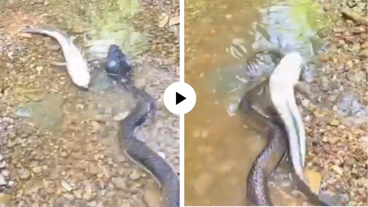 सोशल मिडियावर विविध व्हिडिओज व्हायरल होत असतानाच नुकताच इथे प्राण्यांसंबधित एक मजेदार आणि हास्यास्पद असा व्हिडिओ व्हायरल झाला आहे. प्राण्यांमध्ये शिकारीचे दृश्य फार सामान्य आहे. सध्या अशाच एका शिकारीचा व्हिडिओ सोशल मिडियावर व्हायरल झाला आहे ज्यातील दृश्ये पाहून तुम्हाला हसूच अनावर होईल. वास्तविक यात एका नदीत साप आणि त्याच्या समोर एक मासा पोहत असल्याचे दिसते पण खरी मजा तेव्हा येते जेव्हा मासा आपल्या मारण्याचे नाटक सुरु करतो. पण खरा ट्विस्ट तेव्हा होतो जेव्हा सापाचे खारेपण बाहेर येते. सापाला वेडा बनवण्याचा प्रयत्न करणारा मासा शेवटी स्वतःच वेडा ठरतो पण व्हिडिओत नक्की काय घडतं ते आम्ही तुम्हाला सांगतो, चला जाणून घेऊया.