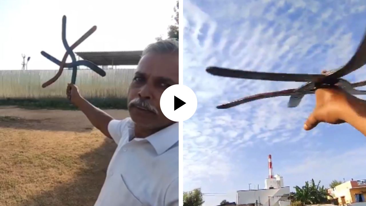 व्हायरल व्हिडिओमध्ये आपण पाहू शकता यात काका सुदर्शन चक्राप्रमाणे दिसणाऱ्या गोष्टीला हातात पकडून उभे असातात आणि पुढच्याच क्षणी ते हवेत हे चक्र फेकतात. यानंतर आपल्याला हवेत हे चक्र गोलगोल फिरताना दिसून येते. अवकाशात फेकलेली ही गोष्ट आता कुठेतरी पडेल असा सर्वांचा अंदाज असतो परंतु घडते काही वेगळेच. अवकाशाची एक फेरी मारुन झाल्यानंतर हे चक्र पुन्ही काकांच्या हातात परतते. काका आपल्या बोटांमध्ये त्याला पकडतात, त्यांचा अंदाज फार जबरदस्त असतो. हे चक्र पुन्हा परतले कसे याची कल्पना कुणालाच नाही पण हे दृश्य पाहून सर्वांनाच महाभारतातील सुदर्शन चक्राची आठवण झाली असावी, एवढं नक्की. लोक हे दृश्य पाहून चांगलेच थक्क झाले आहेत.