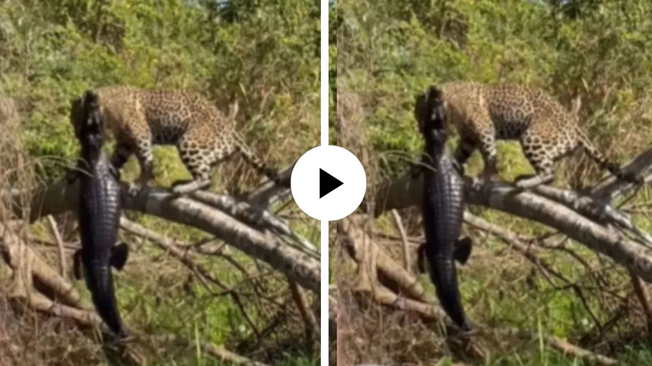 व्हायरल होत असलेल्या व्हिडिओमध्ये तुम्ही पाहू शकता की, जंगलाचा परिसर दिसत आहे. येथेच एक बिबट्या एका झाडाच्या फांदीवर उभा आहे. त्याच्या जबड्यात एक भली मोठी मगर दिसत आहे. फांदीवरुन तो मगरीला फरपटत घेभव जात आहे. बिबट्याने मगरीची मान धरली आहे. आपली शिकार घेऊन जाताना बिबट्या दिसत आहे. या थरारक दृश्याचा व्हिडिओ व्हायरल होत आहे. यापूर्वी मगरीची शिकार करातानाचा व्हिडिओ सोशल मीडियावर व्हायरल झाला होता. ज्यामध्ये बिबट्याने पाण्यातच शिरुन मगरीची शिकार केली होती. शिवाय एका जंगल सफारीतील बिबट्या अचानक दोन पायांवर उभे राहिल्याचा व्हिडिओ देखील सोशल मीडियावर व्हायरल होत आहे.