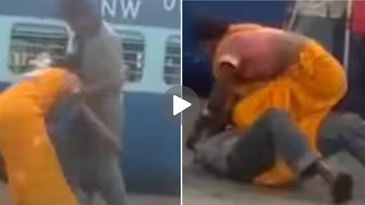 हा व्हिडिओ सोशल मीडियावर मोठ्या प्रमाणात व्हायरल होत आहे. यामध्ये रेल्वे स्टेशनवरच पती-पत्नीमध्ये भांडण झाले आहे. दोघेही स्टेशनवर उभे असताना अचानक त्यांच्यात काहीतरी खटकल्याचे व्हिडिओमध्ये दिसत आहे. पत्नीचा राग इतका वाढतो की तिला स्वतःवर नियंत्रण ठेवता येत नाही आणि ती असे काहीतरी करते की, पाहून अनेकांना धक्का बसला आहे. कारण सार्वजनिक ठिकाणी अशी हाणामारी लोकांना आश्चर्यचकित करते.