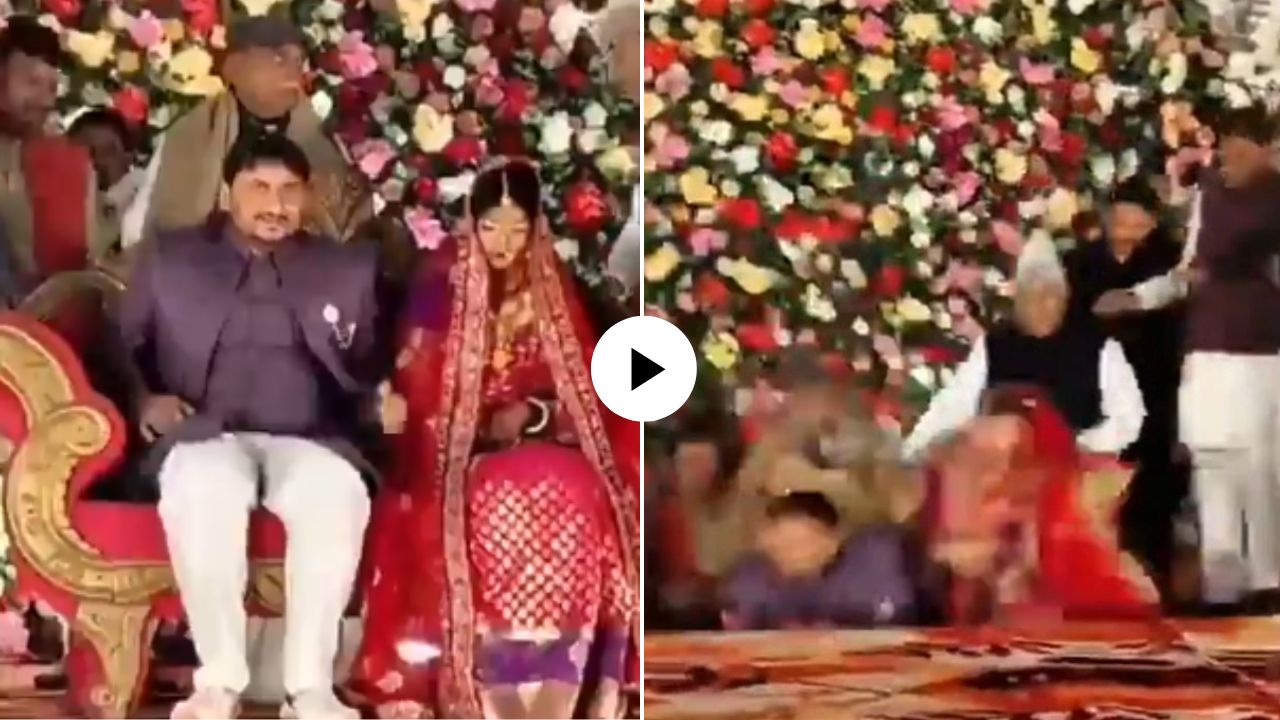 Epic Fall in UP’s Ballia Wedding Stage CRASHES seconds after BJP District President & #BJP leaders climb on to “Bless” the Newlyweds! Is This A Sign? 😂#UttarPradesh #DelhiPollution #AirPollution pic.twitter.com/cTL6AajKlH — তন্ময় l T͞anmoy l (@tanmoyofc) November 28, 2025