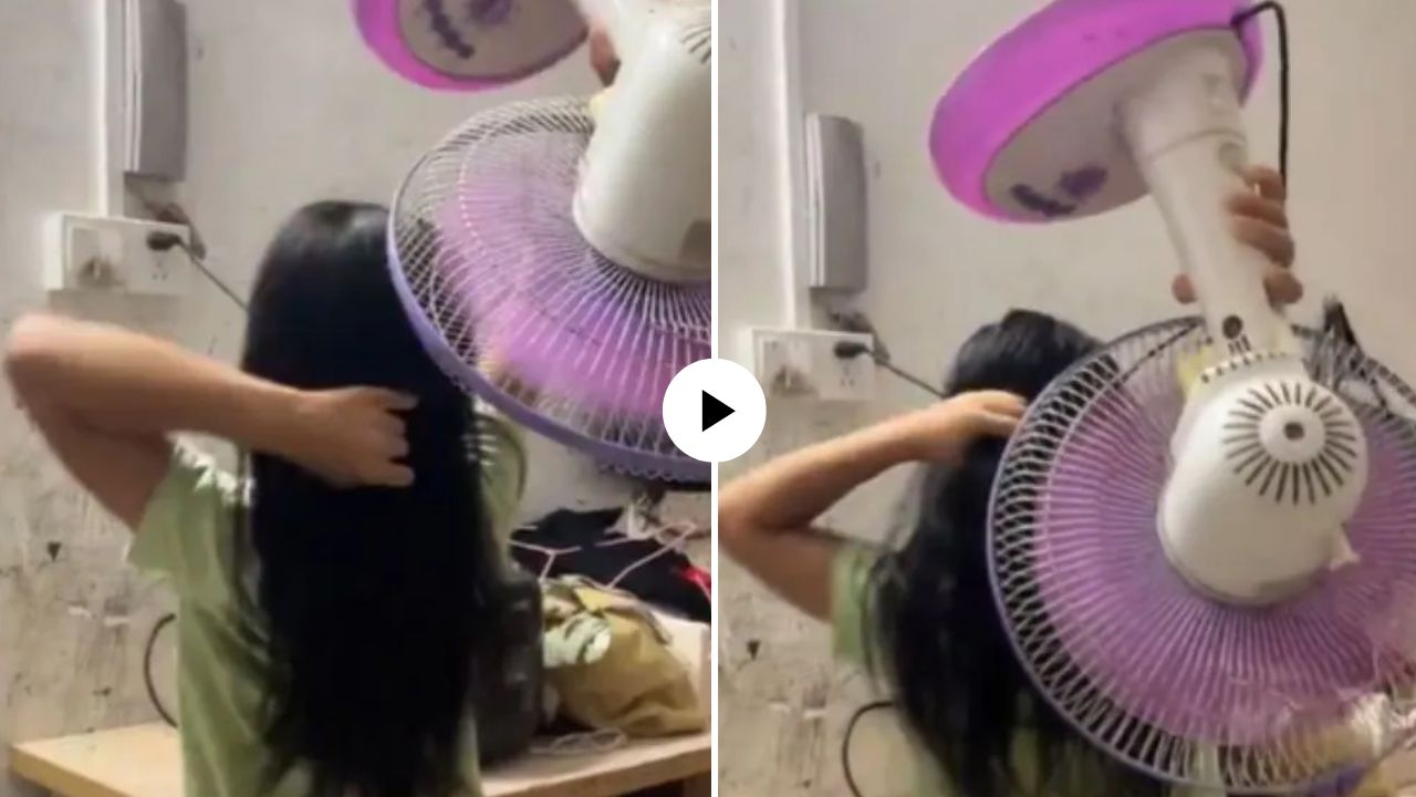 जुगाड करणाऱ्यांच्या मते यामुळे त्यांचा वेळ आणि पैसा दोन्ही वाचतो. सध्या असाच एक मजेशीर जुगाडाचा व्हिडिओ सोशल मीडियावर व्हायरल होत आहे. यामध्ये एका तरुणीने केस सुकवण्यासाठी हेअर ड्रायर न मिळाल्याने एक भन्नाट जुगाड केला आहे. यामध्ये तरुणीने एक टेबल फॅन घेऊन तिचे केस सुकवले आहेत. विशेष म्हणडे एवढा जड टेबल फॅन ती एका हाताने उचलत आहे. पण हा व्हिडिओ पाहून अनेकांनी याची मज्जा घेतली आहे. सध्या हा व्हिडिओ सोशल मीडियावर मोठ्या प्रमामात व्हायरल होत आहे.