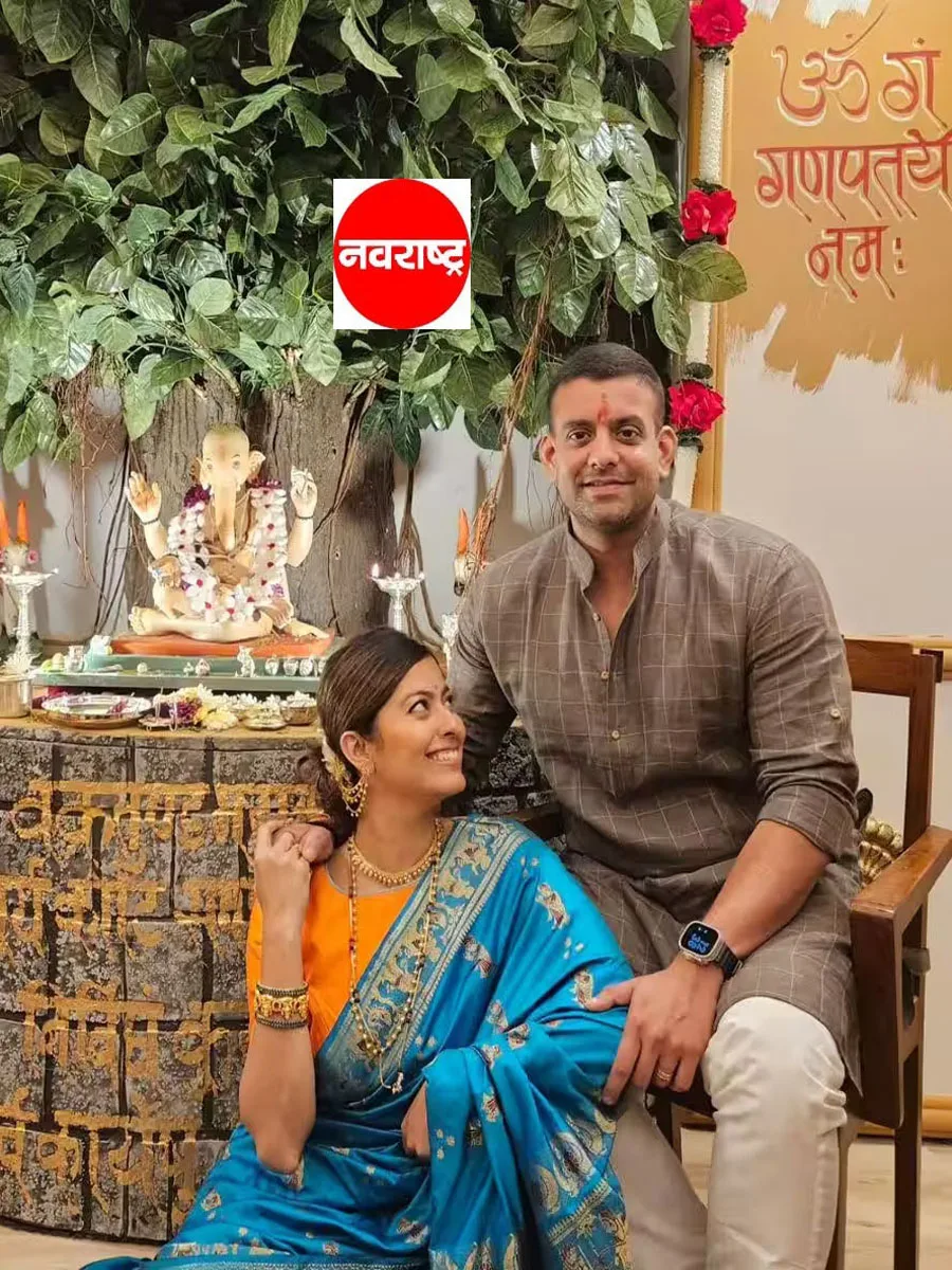 अभिज्ञाने तिचा नवरा मेहुल पैसोबत बाप्पाच्या स्वामीरुपी मूर्तीची पूजा केली.