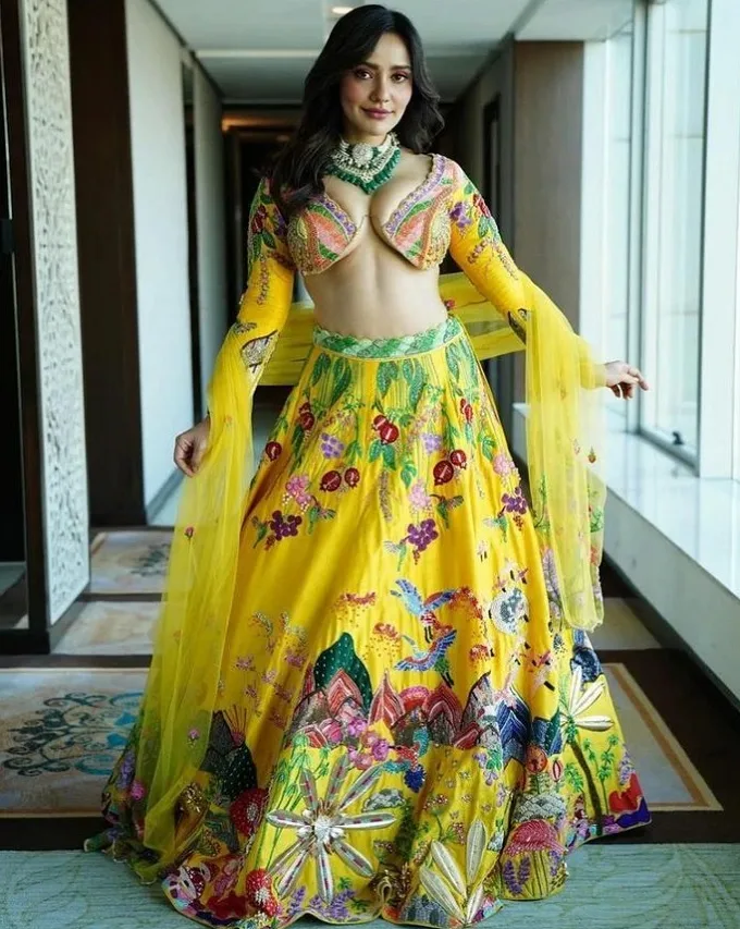 नेहाने पिवळ्या रंगाच्या लेहेंगा परिधान केला त्यावर अतिशय सुंदर ब्लाउज कॅरी केला आहे