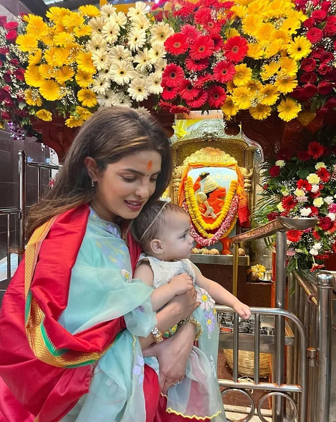 सोशल मीडियावर प्रियंका आणि मालतीचे सिद्धिविनायक मंदिरातील फोटो व्हायरल होत आहेत.