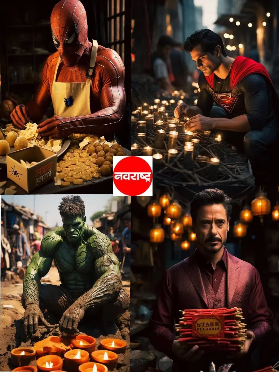 आर्टिफिशिअल इंटेलिजन्सच्या मदतीने मार्वलचे सुपरहिरो दिवाळीची तयारी करतानाचे फोटो तयार करण्यात आले आहेत. यात स्पायडरमॅन मिठाई विकताना दिसतोय.