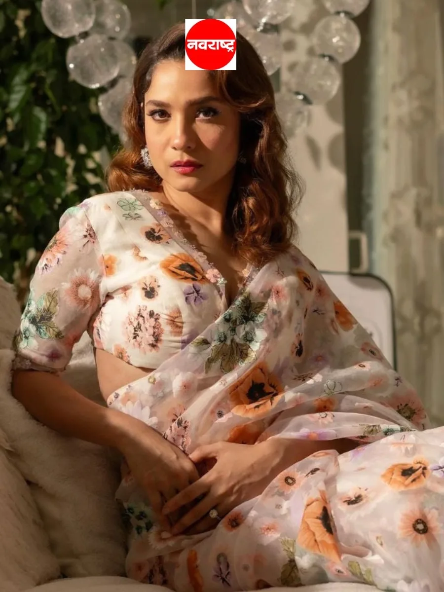 पिंक फ्लोरल प्रिंटेड साडी अंकिताने नेसली आहे, चाहते कौतुक करत आहेत.