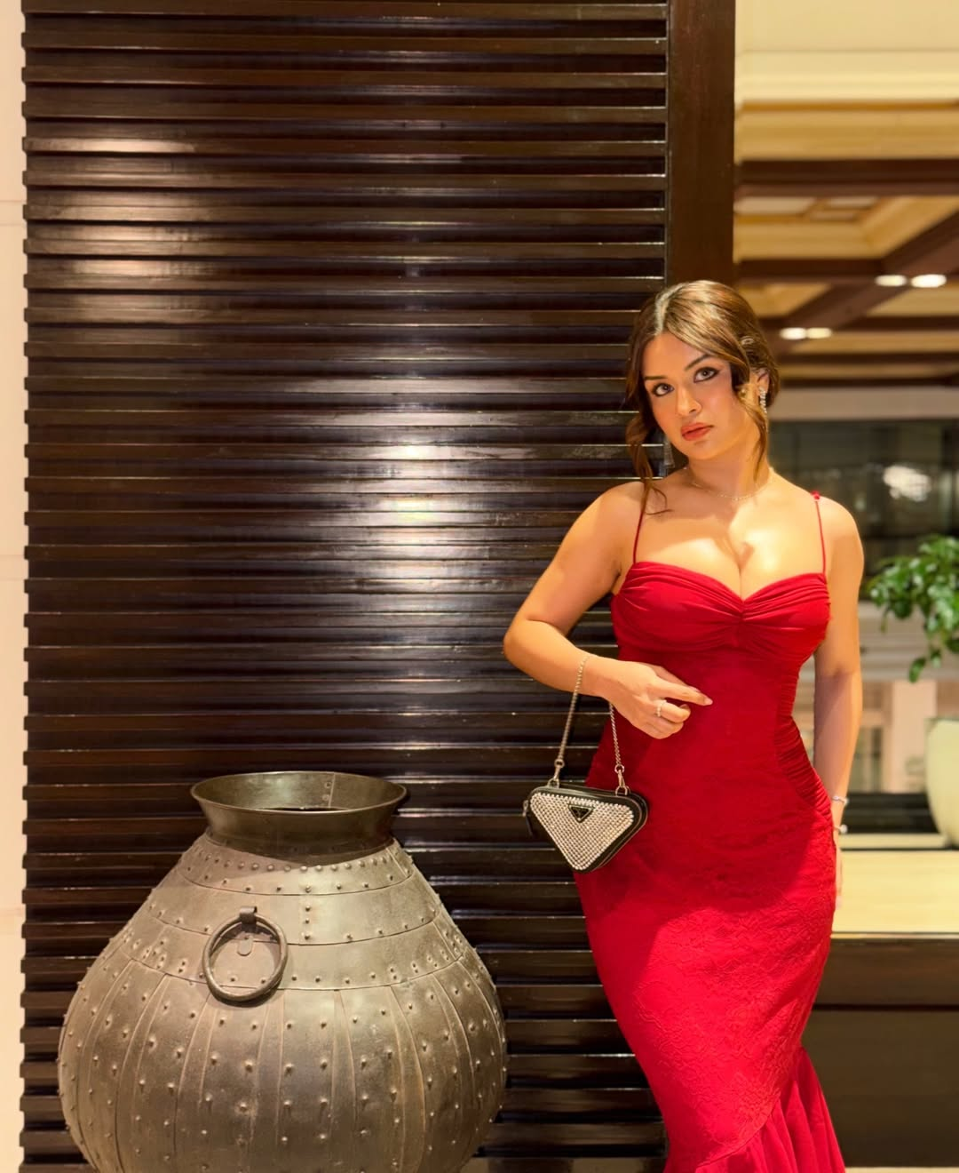 अभिनेत्रीने लाल रंगाचा वन पीस परिधान केला आहे.