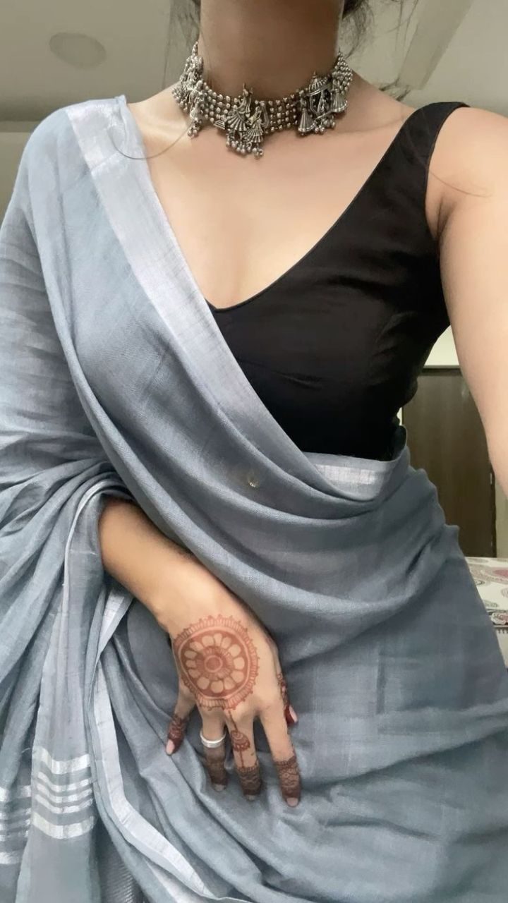 फिकट रंगाच्या साड्यांवर गडद रंगाचे (उदा. रॉयल ब्लू, काळा, किंवा लाल) ब्लाउज घातल्यास एक प्रभावी कॉन्ट्रास्ट तयार होतो.
