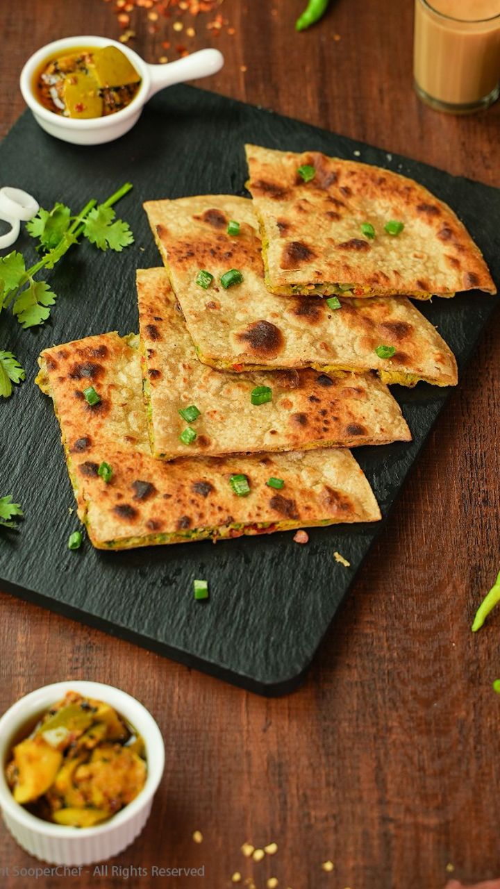 कणकेचा एक गोळा घेऊन मध्यम जाडीचा पराठा लाटून घ्या.