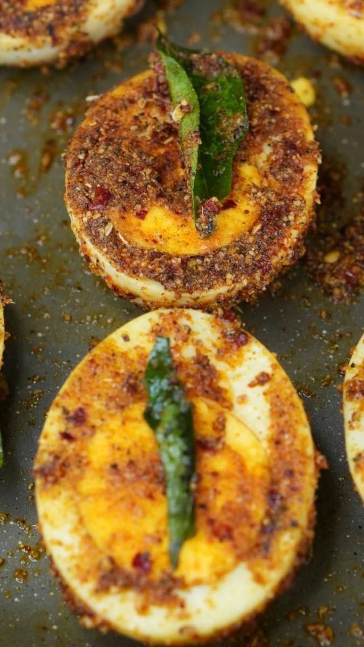 ही मसाल्याची पेस्ट उकडलेल्या अंड्यांवर दोन्ही बाजूंनी हलक्या हाताने लावा.
