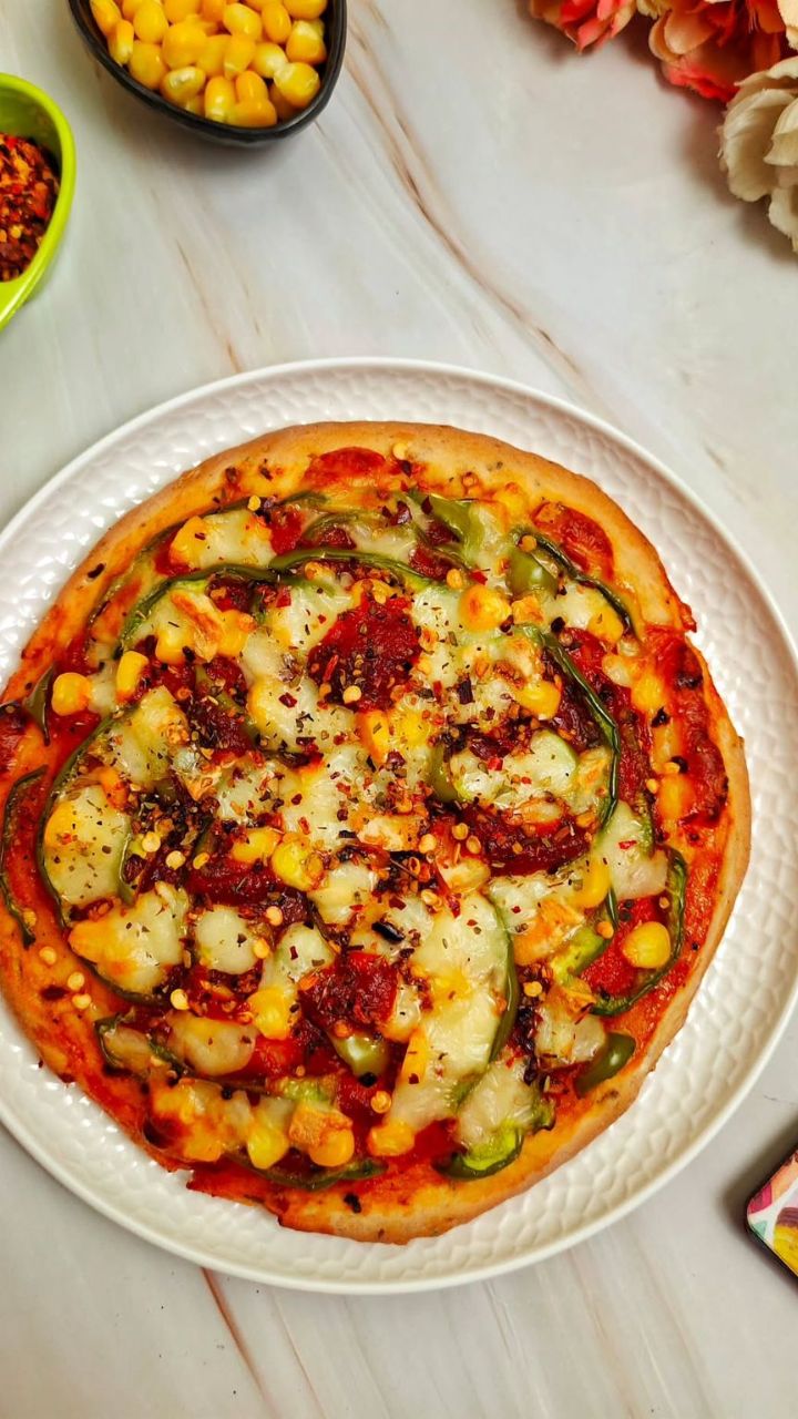 आता त्यावर कांदा, टोमॅटो आणि शिमला मिरची घाला.