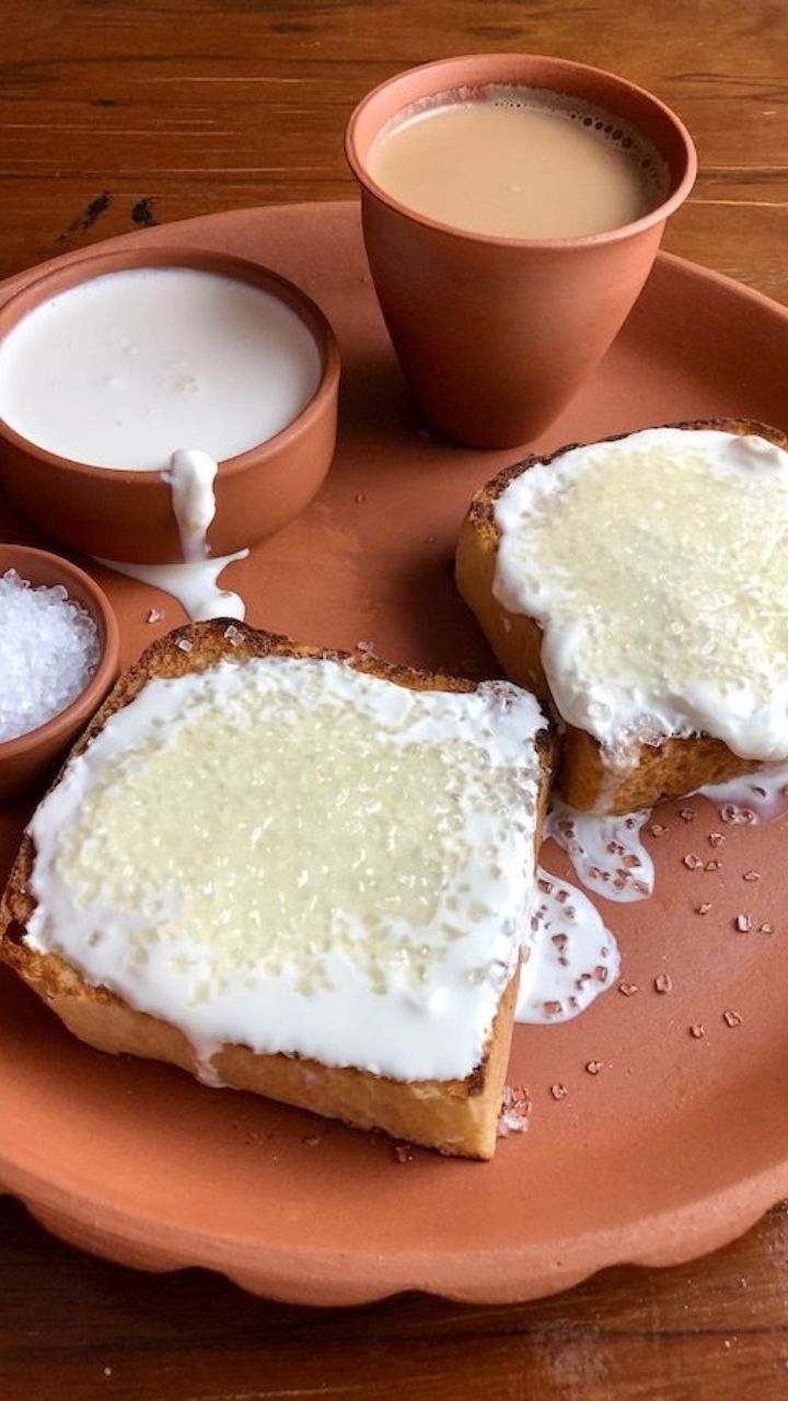 तवा मंद आचेवर गरम करून मलाई लावलेले ब्रेड काळजीपूर्वक त्यावर ठेवा (मलाईची बाजू वर).