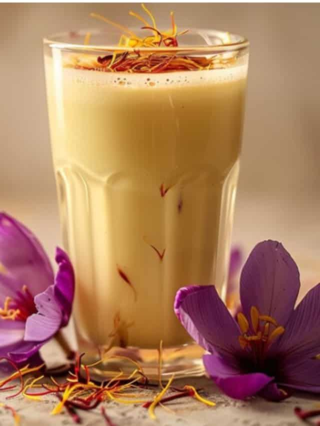 ४-५ केसर काड्या २ टेबलस्पून कोमट दूधात १० मिनिटांसाठी पाण्यात भिजवा
