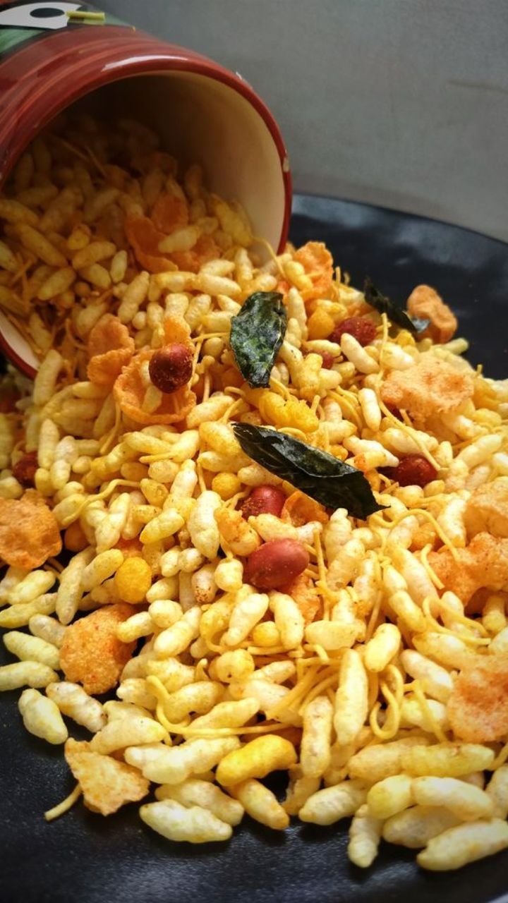 कढई गरम करून त्यात मुरमुरे हलकेसे कोरडे भाजून घ्या. ते कुरकुरीत झाले की बाजूला काढा.