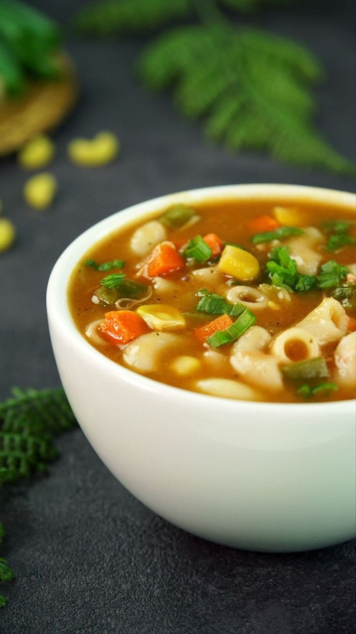 शेवटी उकडलेला मॅक्रोनी पास्ता सूपमध्ये घालून २ मिनिटे शिजवा, जेणेकरून सर्व चव एकत्र येईल.